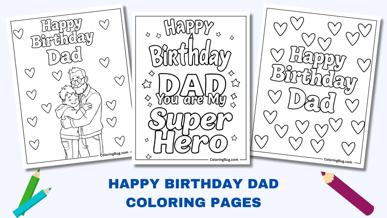 Celebrate Dad’s special day with this unique collection of Happy Birthday Dad and Daddy coloring pages!